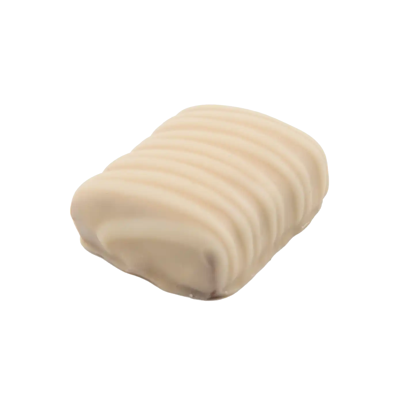 Velvety white chocolate and soft hazelnut gianduja unite in a tender, creamy melt serene, sweet, and beautifully refined.