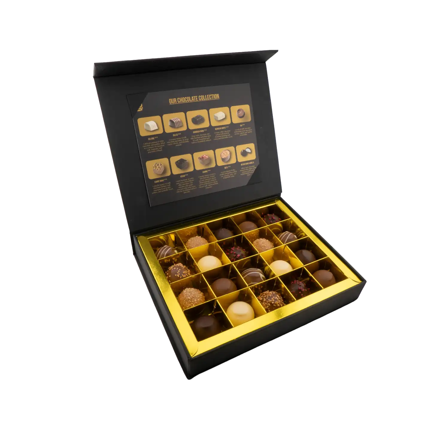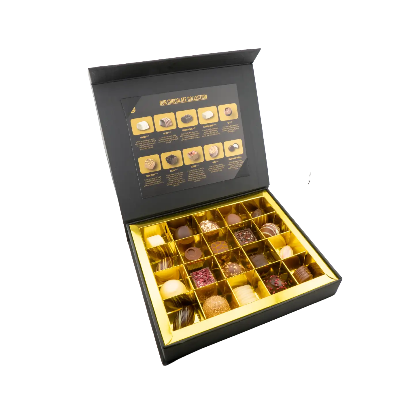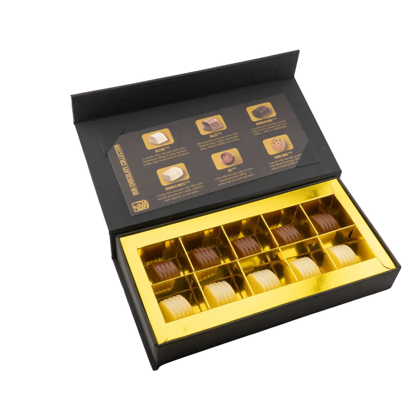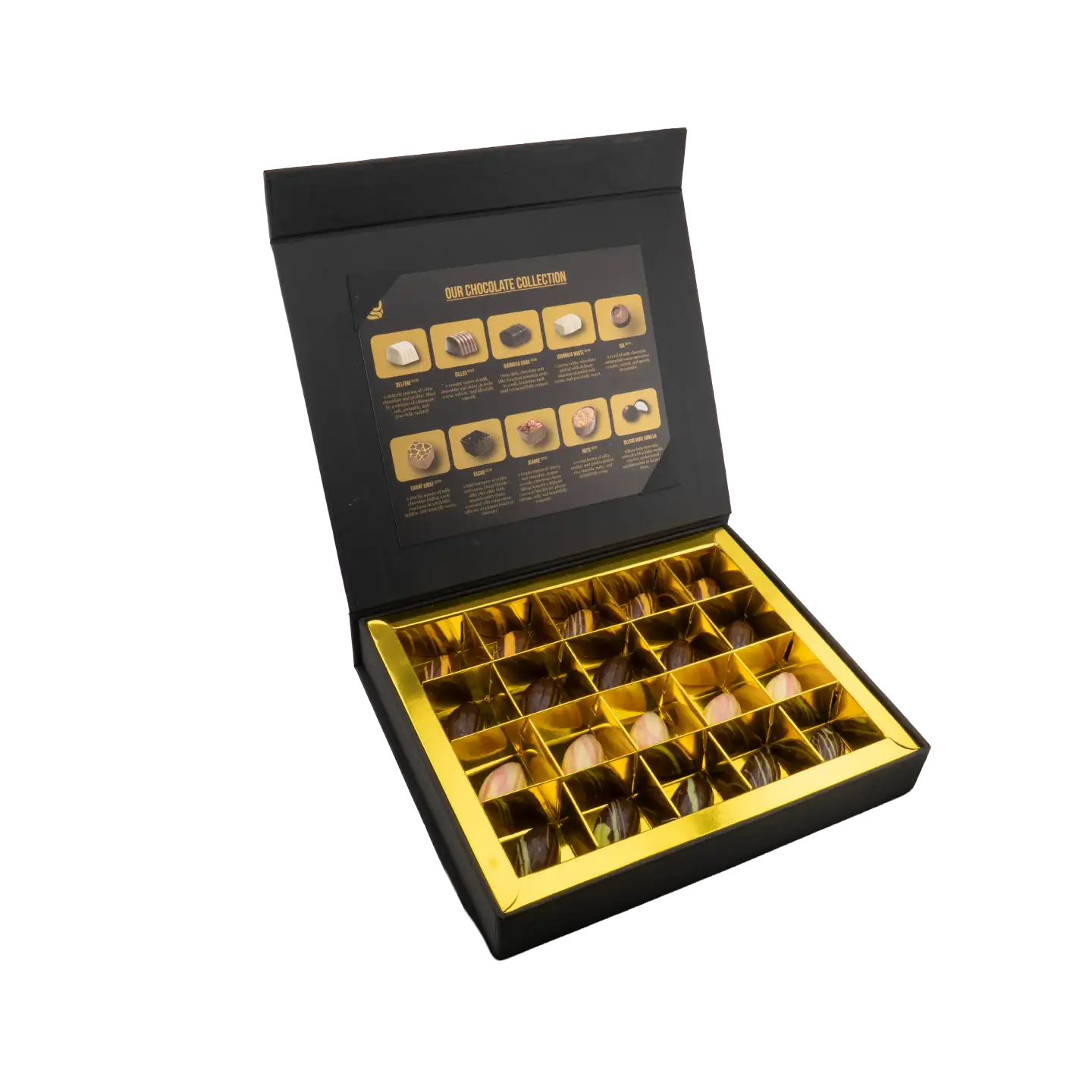 - Packaging Design Elegant, gift-ready packaging designed to elevate the chocolate experience. A perfect balance between luxury presentation and product protection.